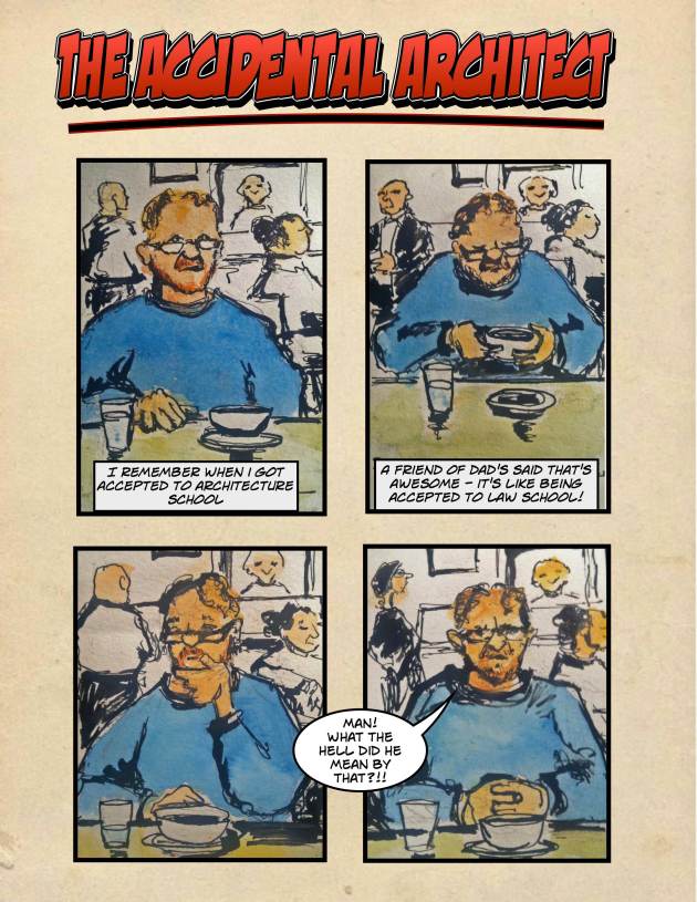 So here I am, 33 years into a career that hardly seemed planned. It was truly a freak accident that I became an Architect. When I first went to University I had absolutely no clue what an Architect did. I started my education taking a year of Engineering. It took me about a month to realize I would probably be a crappy Engineer so I spent the better part of first year in the pub. I was a creative type and Engineering was stifling. It just so happened that my room mate in residence was in first year Architecture. I looked at what I was doing and what he was doing and realized I wanted to be doing that. I always drew and sketched, and I looked at Architecture as a happy medium between being an artist and keeping my Dad happy. It was the start of a 33 year love-hate relationship with my career.